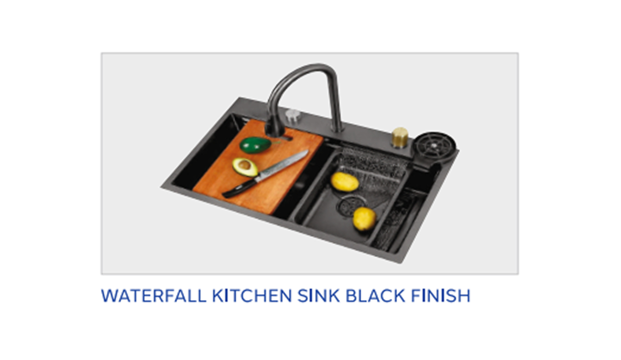 Waterfall Kitchen Sink Black Finish